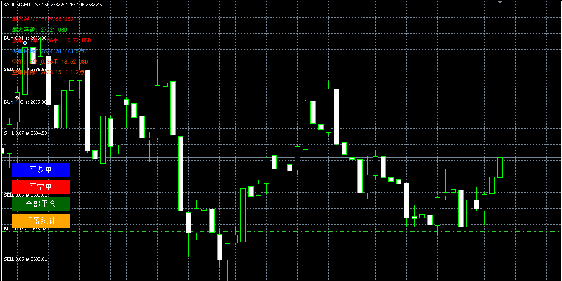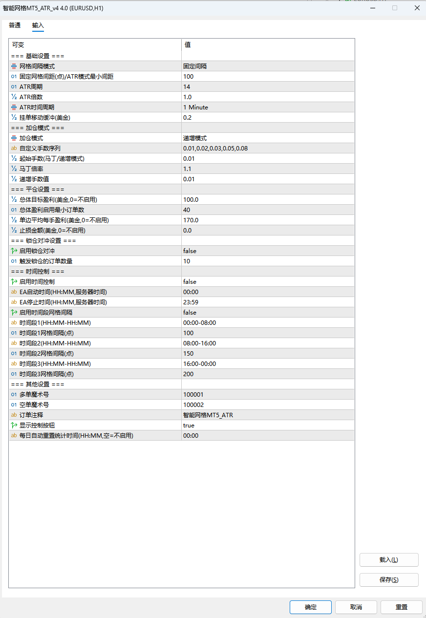 ATR智能网格 MT5作者: cjlliang_dou / 2026年4月7日 交易品种:XAUUSD交易周期:M1 M5 M15EA类型:网格站长建议:实盘前最少模拟一周以上,网格类EA用美分账户其他信息:使用ATR调整网格加仓间隔,有源码